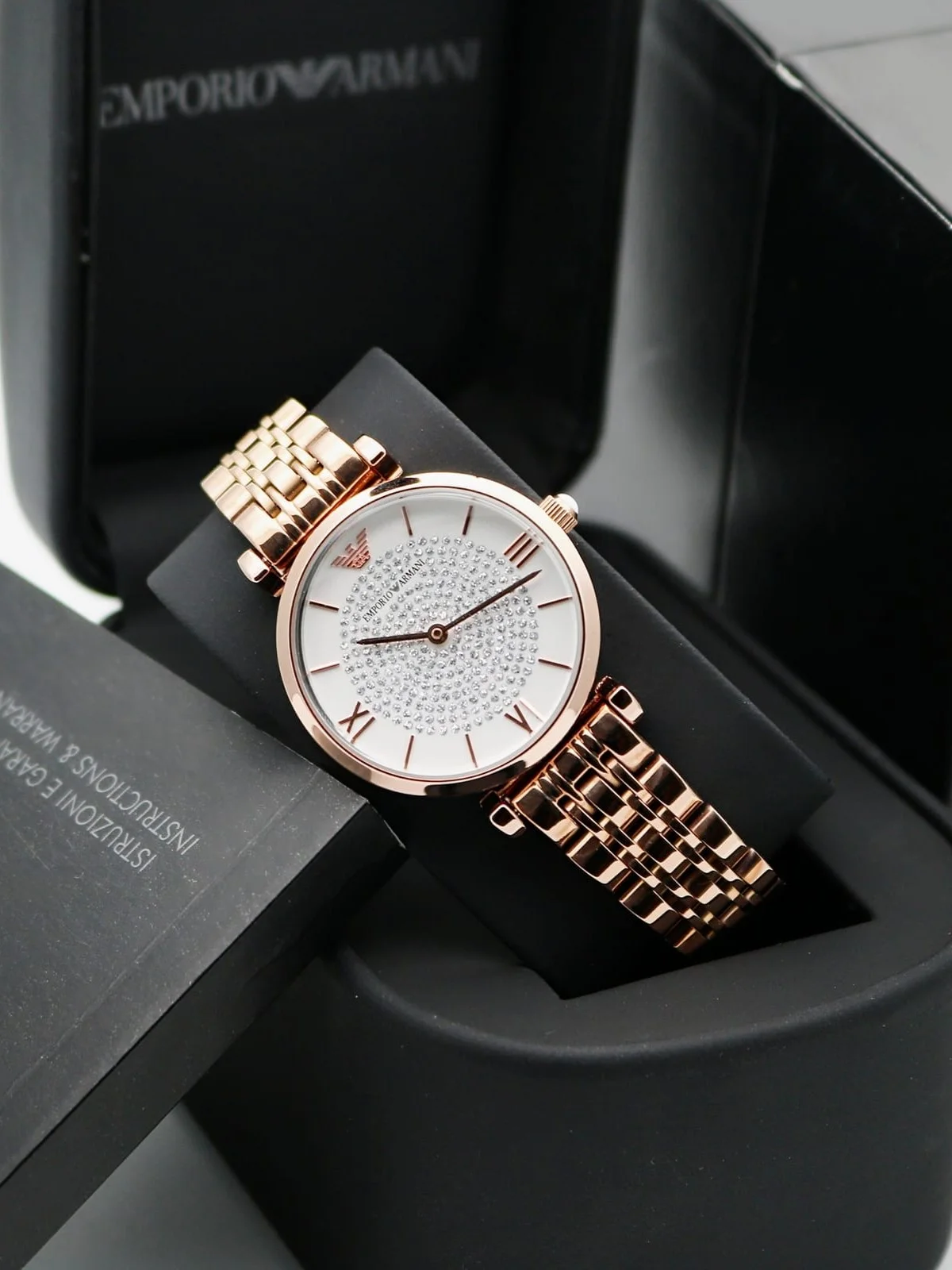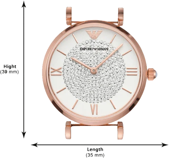 A must-have timepiece for all the watch aficionados, this women’s analog watch from Emporio Armani will be a perfect pick. Its strap vaunts a rose gold hue that enhances the look of the watch. Housed in a case, the white round dial is protected by a mineral glass. It showcases plain 2-hand, and a crown for time adjustment. Furthermore, it is complemented with a jewellery clasp clasp that ensures a secure fit on the wrist.